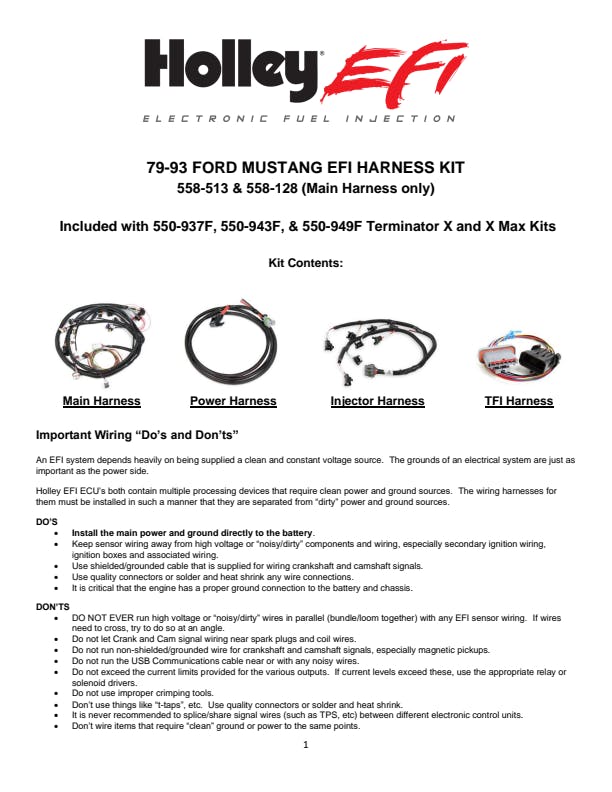 For 1979 to 1993 Ford Mustangs when converting to Holley EFI ECU