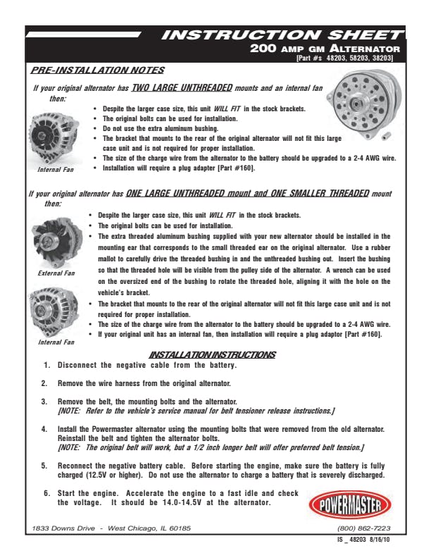 Powermaster 48202 Alternator