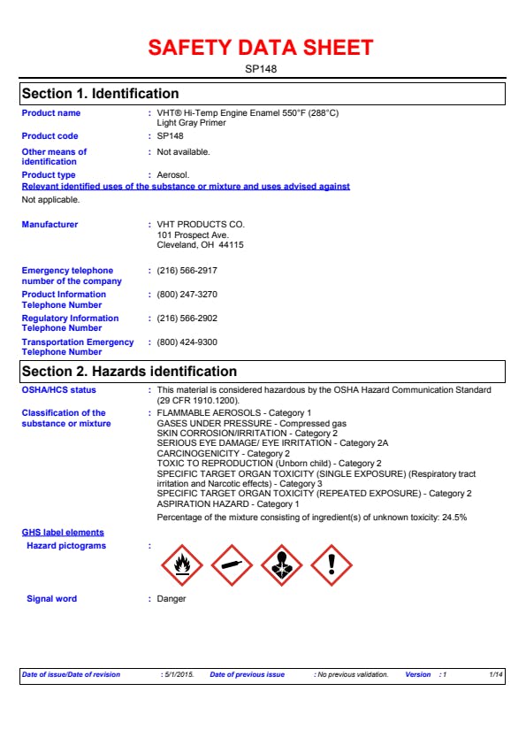 VHT(R) 550°F (288°C) Engine Enamels(TM) are available in a wide range of colors, including exact match factory colors. All colors have excellent durability and superior heat and chemical resistance. They are specially formulated to withstand corrosion, rust, salt spray, chemicals and additives of today's gasoline blends and degreasers. VHT(R) 550°F (288°C) Engine Enamels(TM) are a unique blend of urethane and ceramic resins, which produce a tough and long-lasting finish for engines, engine accessories or wherever a tough durable heat or chemical resistant finish is needed.